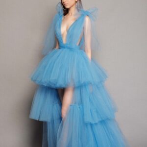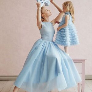 Blue & White Layered Dresses For Mother-Daughter Twinning Photoshoot