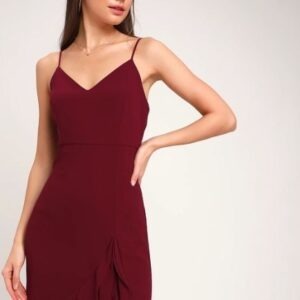 This Wine Asymmetrical Ruffle Gown fits for vacations or Casual get togethers. The best choice for important events, you’ll look divinely beautiful in this wine gown!